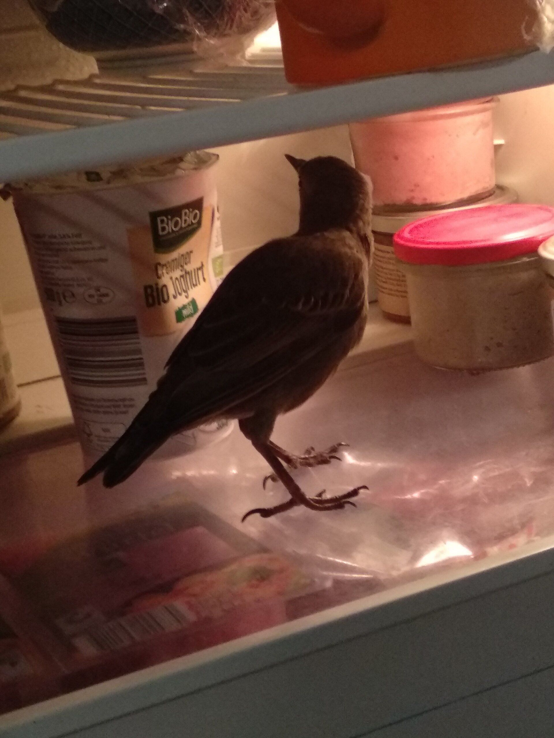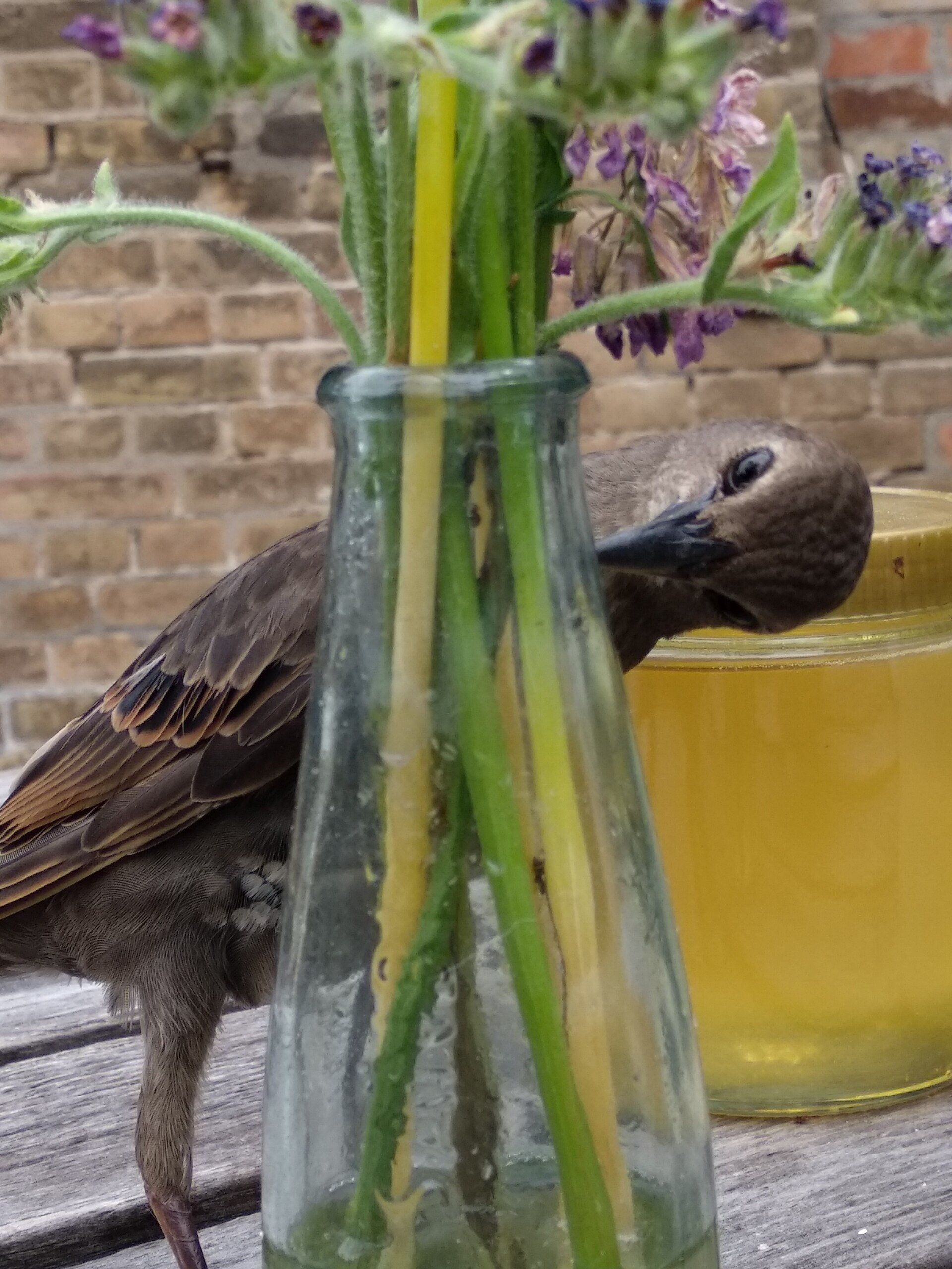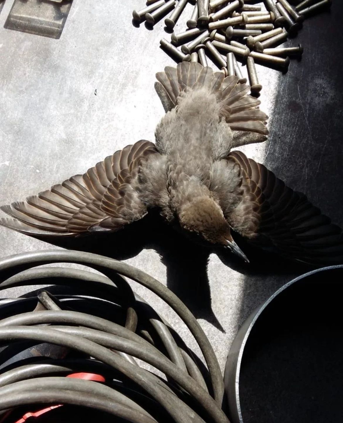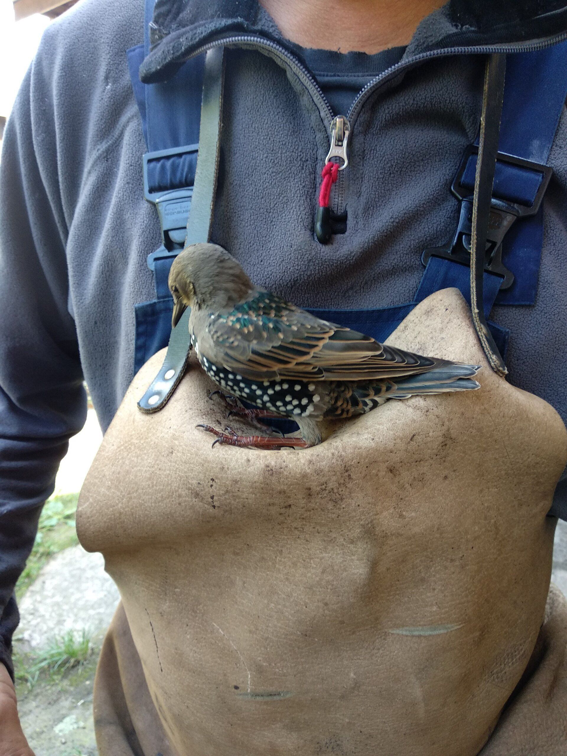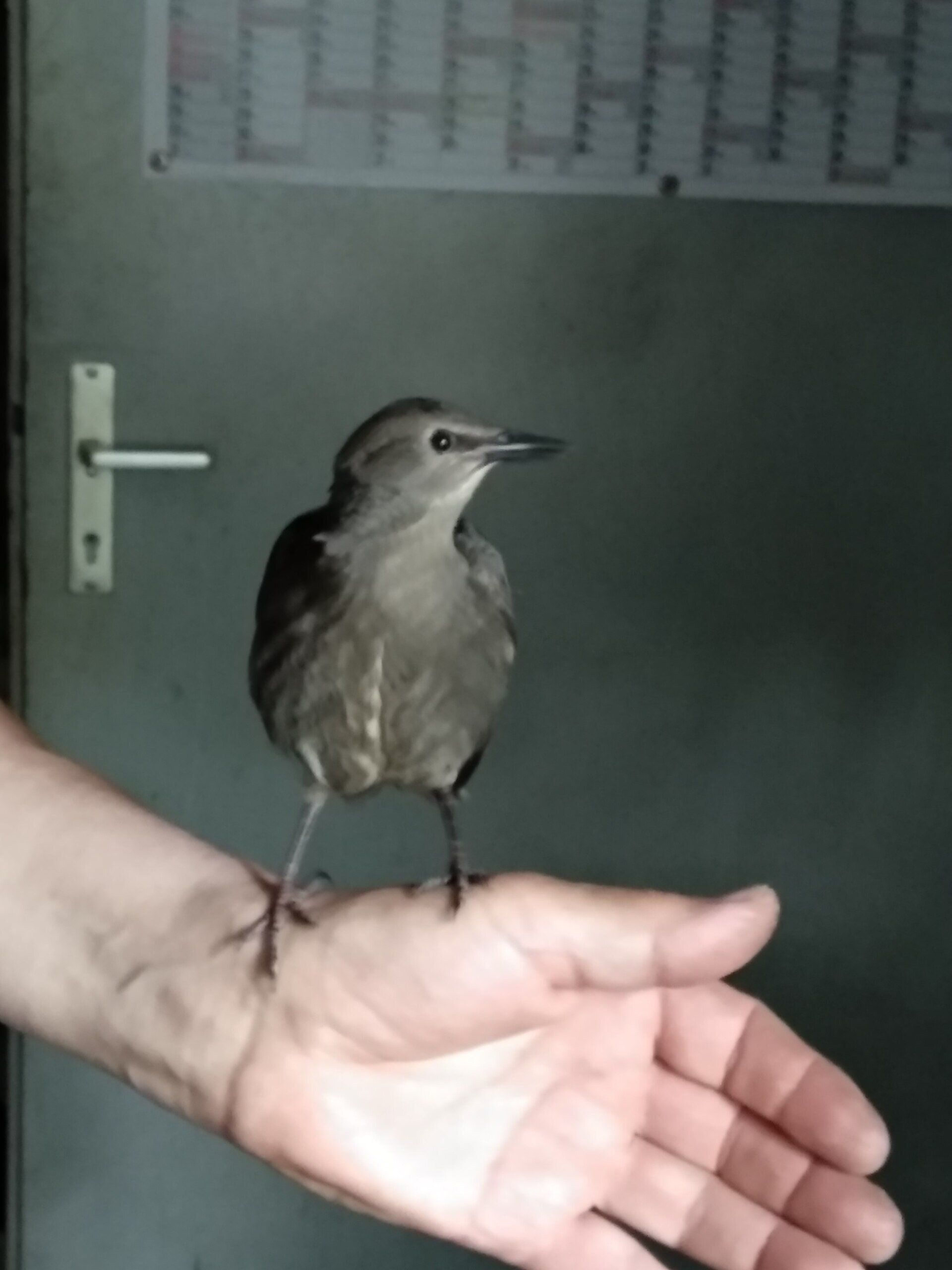 Der kleine Jungvogel wurde bei einer Außenmontage vor den Katzen gerettet, hat vorübergehend in der Schmiede ein neues Zuhause gefunden und gehört nun dazu.